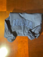 This sweatshirt, available in both navy blue and black, feature a bold "MAMA" design with glitter embroidered applique' for a touch of sparkle. Soft and comfortable, its perfect way to showcase your pride in style with a little added shimmer.
