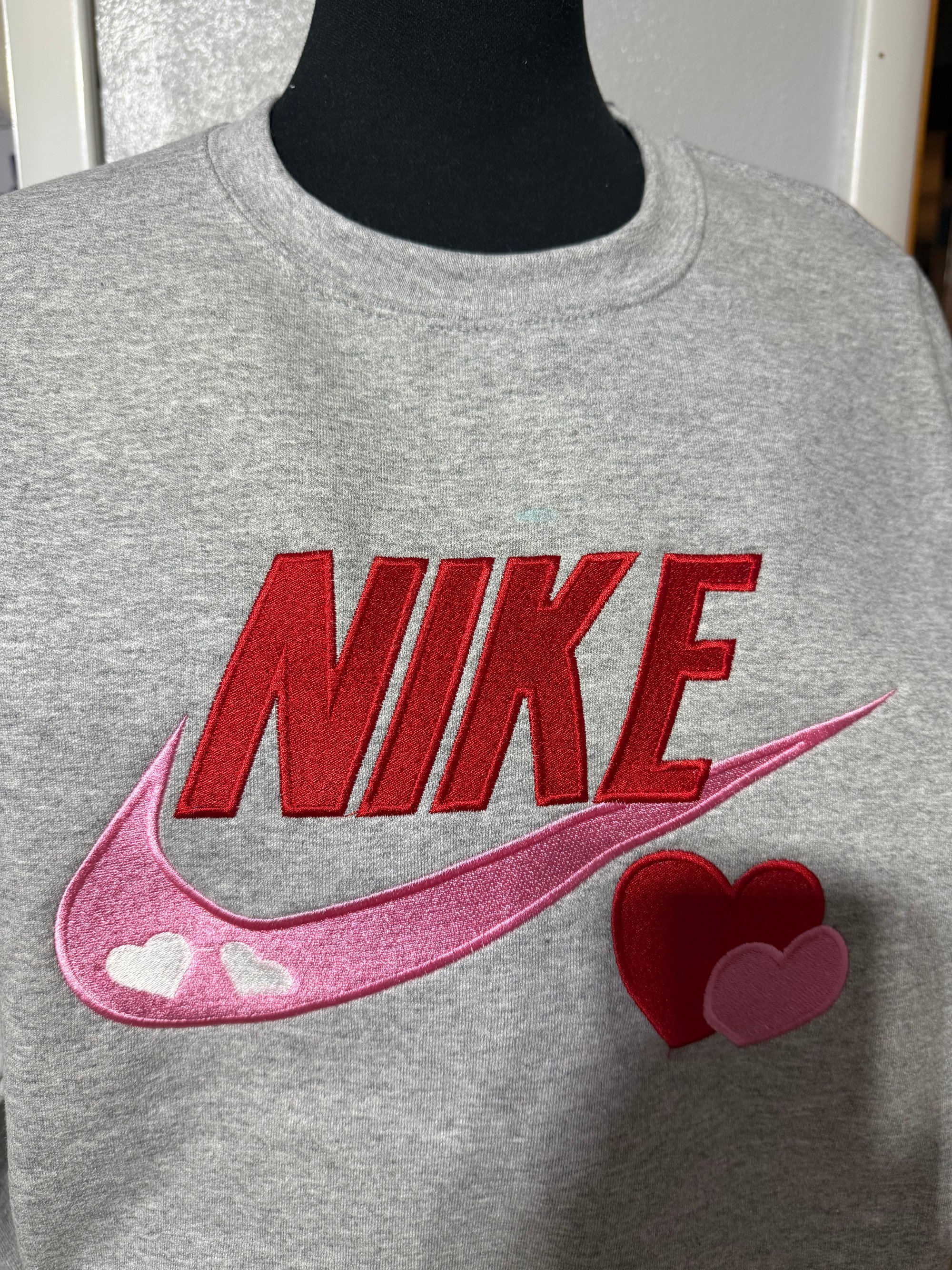 Upgrade your wardrobe with our new embroidered grey sweatshirt, designed for comfort and style. Featuring bold red and pink details and adorable heart accents, this piece adds a perfect pop of personality to your casual outfits.